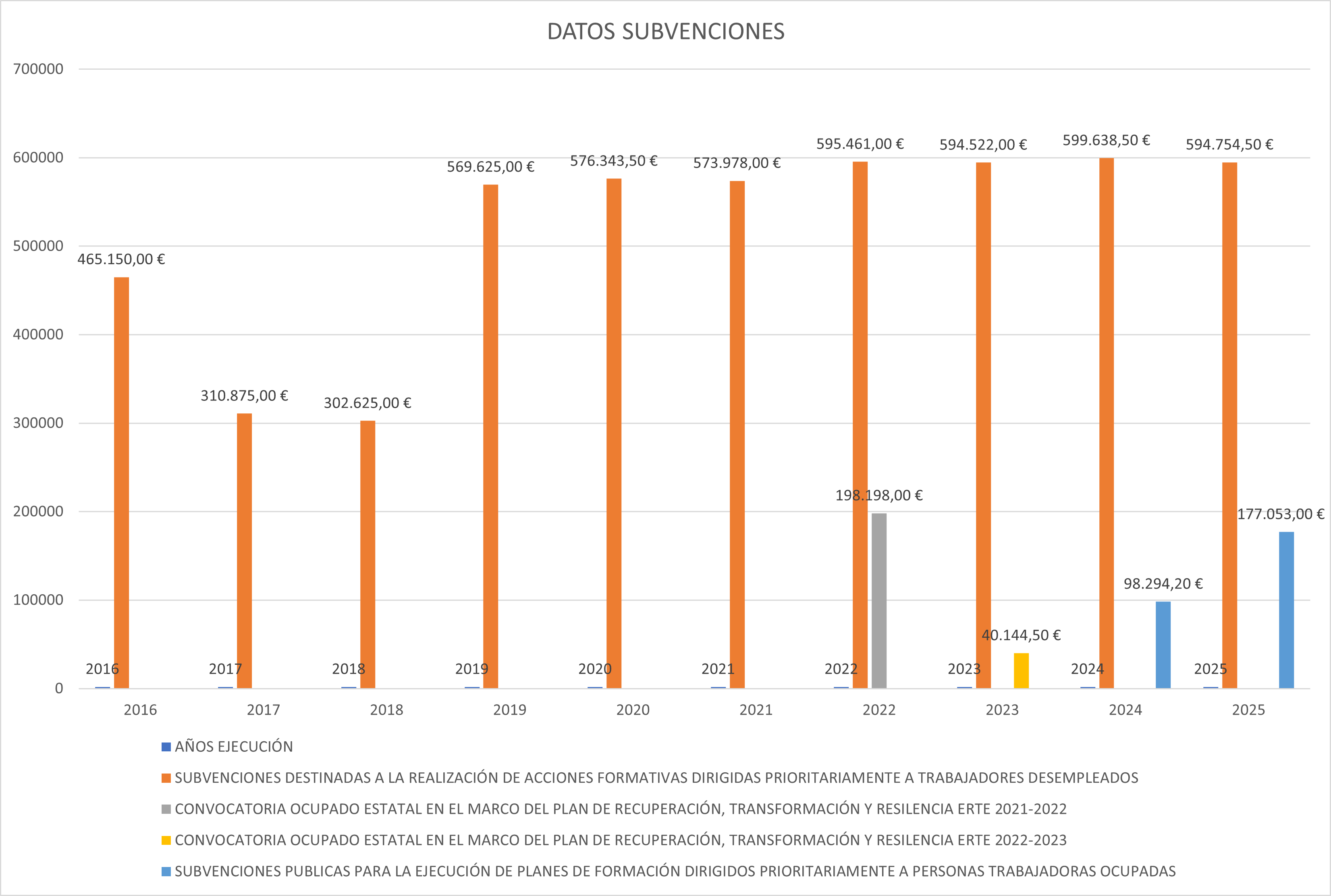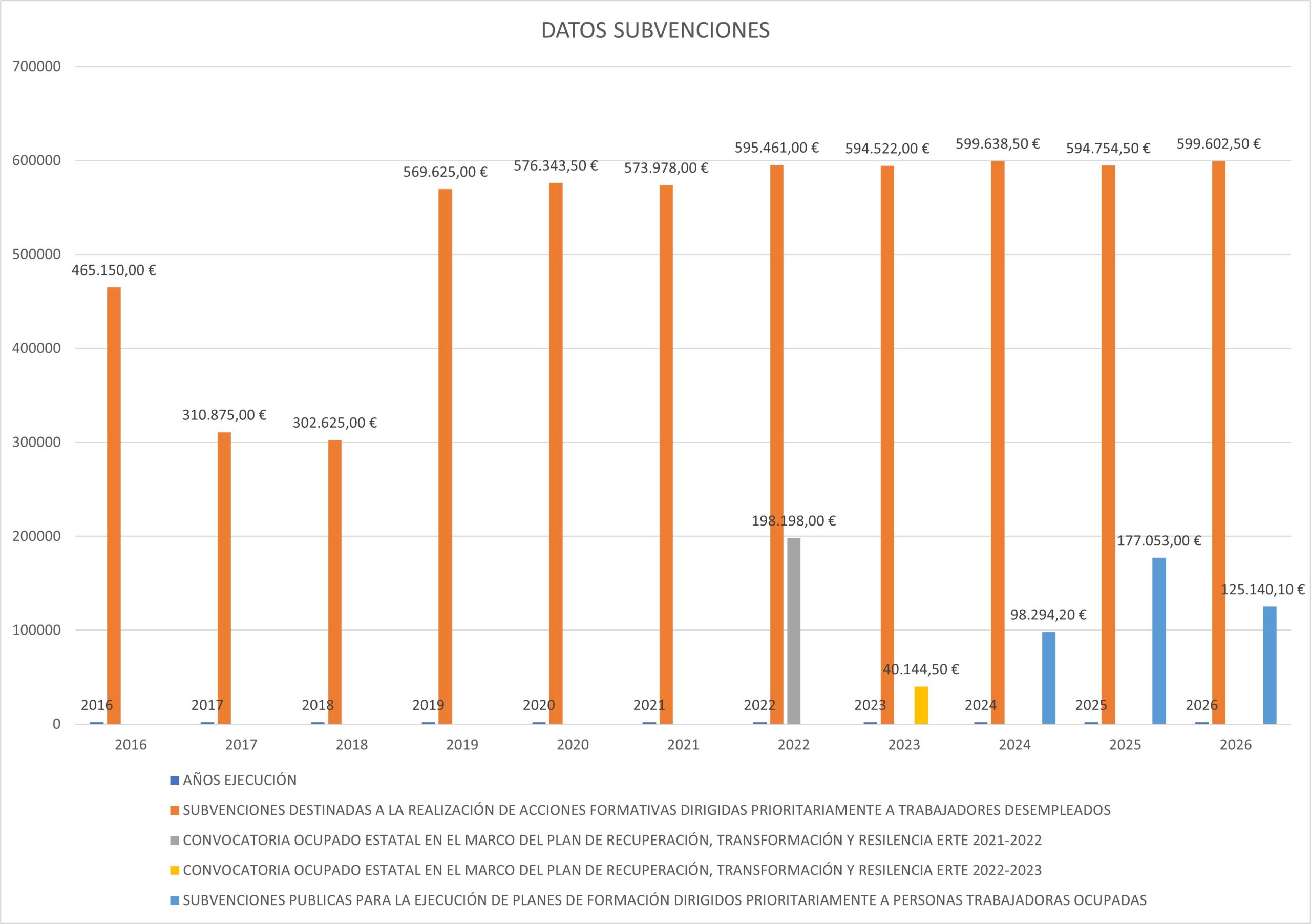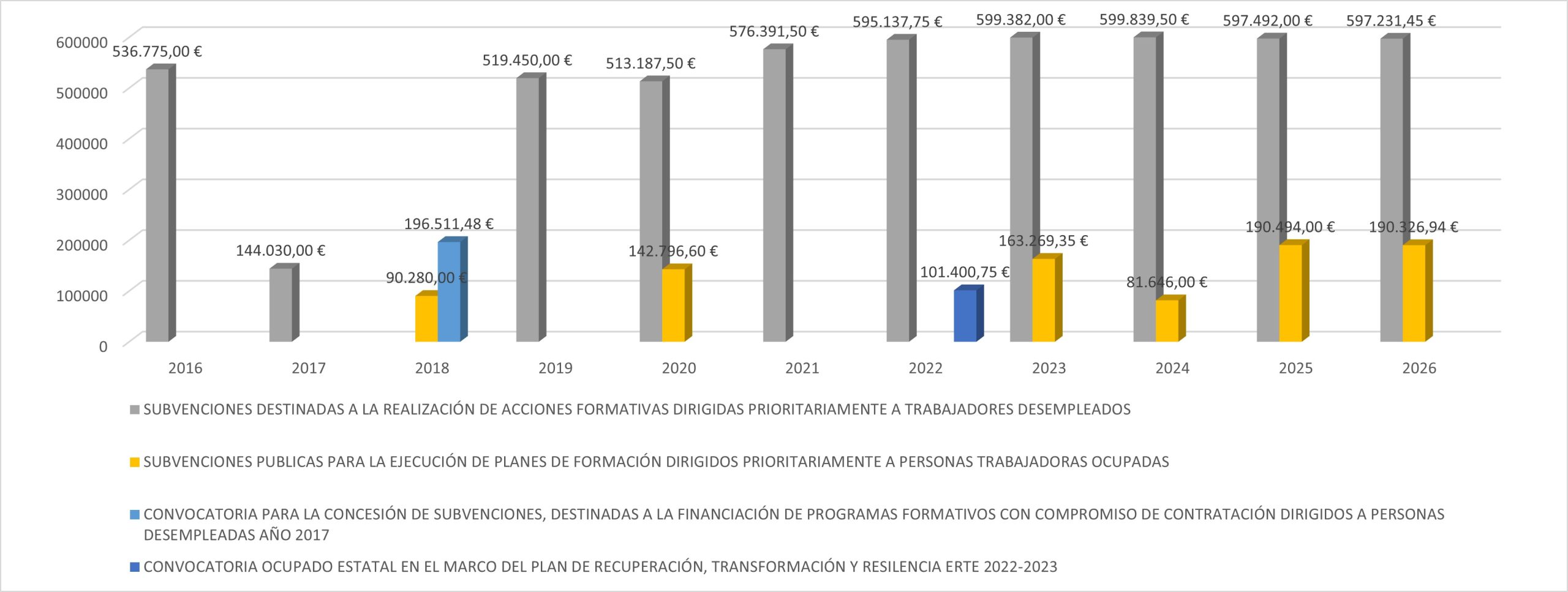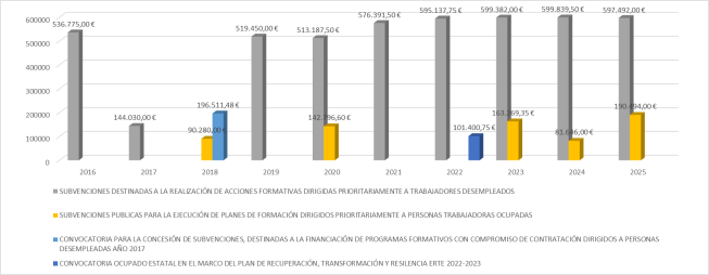 Servicio Canario de Empleo, Resolución de 20 de abril de 2023, por la que se resuelve la convocatoria de subvenciones públicas, para la ejecución de formación dirigidos prioritariamente a trabajadores/as desempleados/as, incluidas en la programación 2023 (BOC n.º 87, de 5 de mayo de 2023). –Subvención: 599.839,50€ link , concedida.